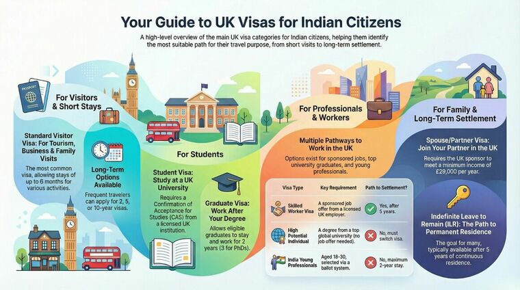 The UK offers a comprehensive range of visa categories to accommodate different purposes of travel. Understanding which visa type suits your needs is the first critical step in your application journey. Here's a detailed breakdown of all major UK visa types available to Indian citizens in 2025-2026: