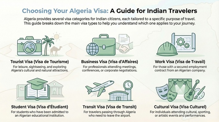 Algeria offers several visa categories for Indian citizens based on the purpose of travel. Understanding which visa type suits your travel needs is the first crucial step in your application journey.