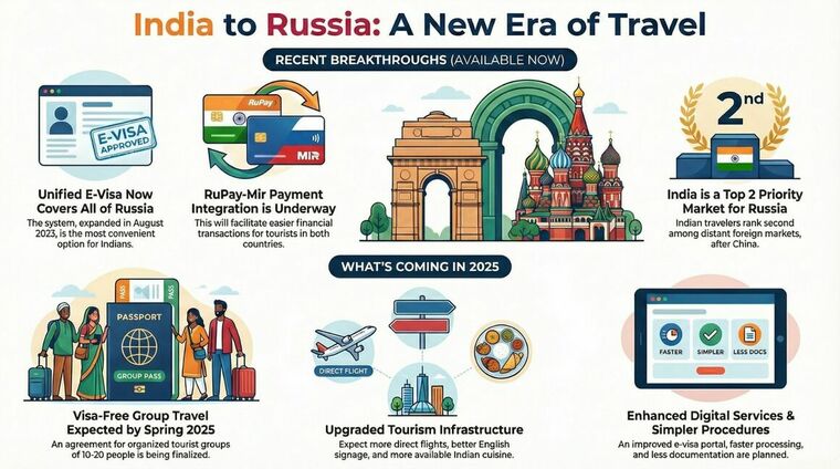 Major Update (November 2025): India and Russia are in the final stages of implementing a historic visa-free travel agreement for group tourists, expected to launch in Spring 2025. This groundbreaking development will significantly simplify travel between the two nations.